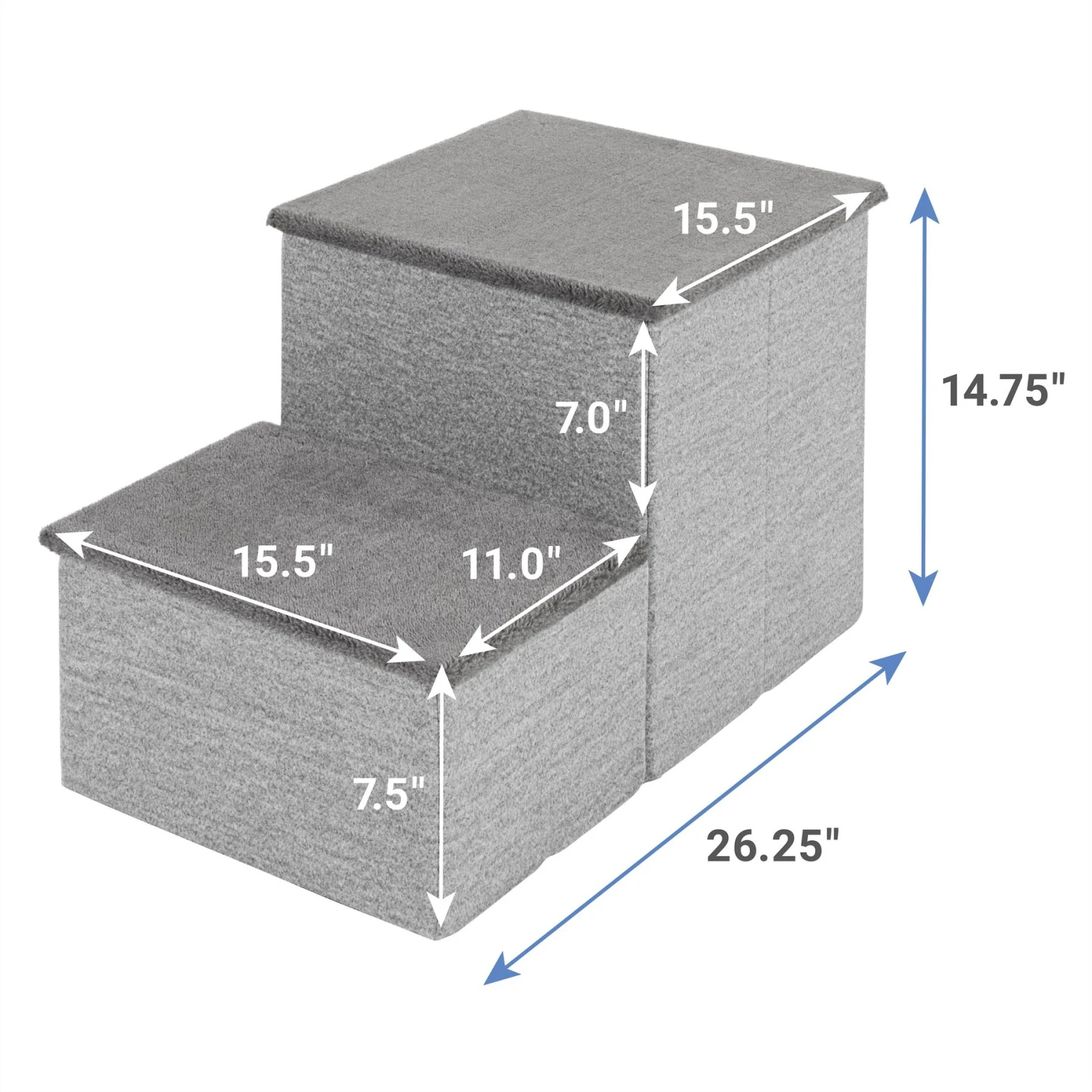 Give your pets a little lift and save some space with the Frisco Collapsible Pet Step & Storage. You can place these steps anywhere your pet might need some extra help. The plush material on the top of the steps are soft and comfortable for pet to put their paws on when they’re climbing up or down. Need a place to put your stuff in? Behold! The steps come off to reveal more space! When you need to transport and tuck it away, it’s easy to fold it down. Plus this modern design can match any home decor.