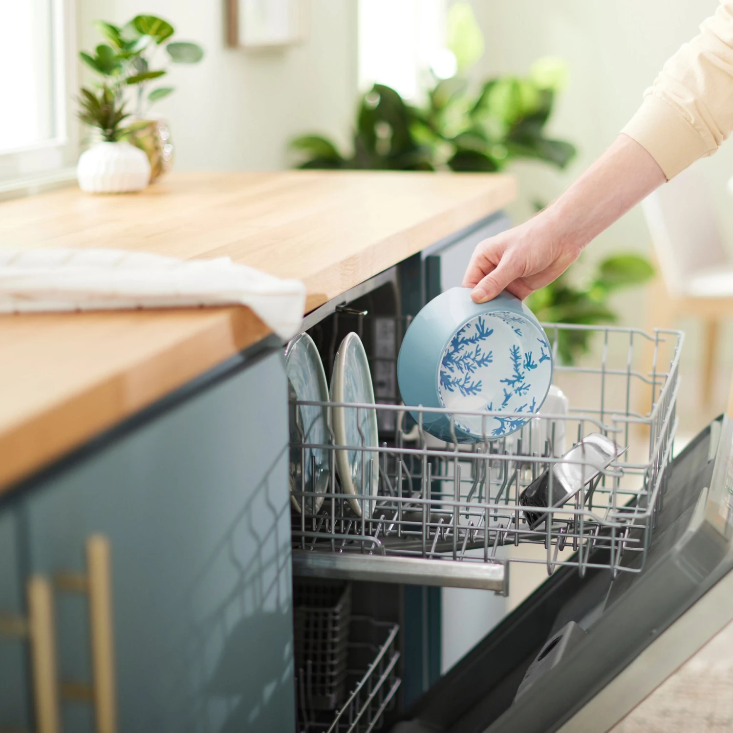 - The stainless-steel bowl easily comes out of the decorative base for cleaning.