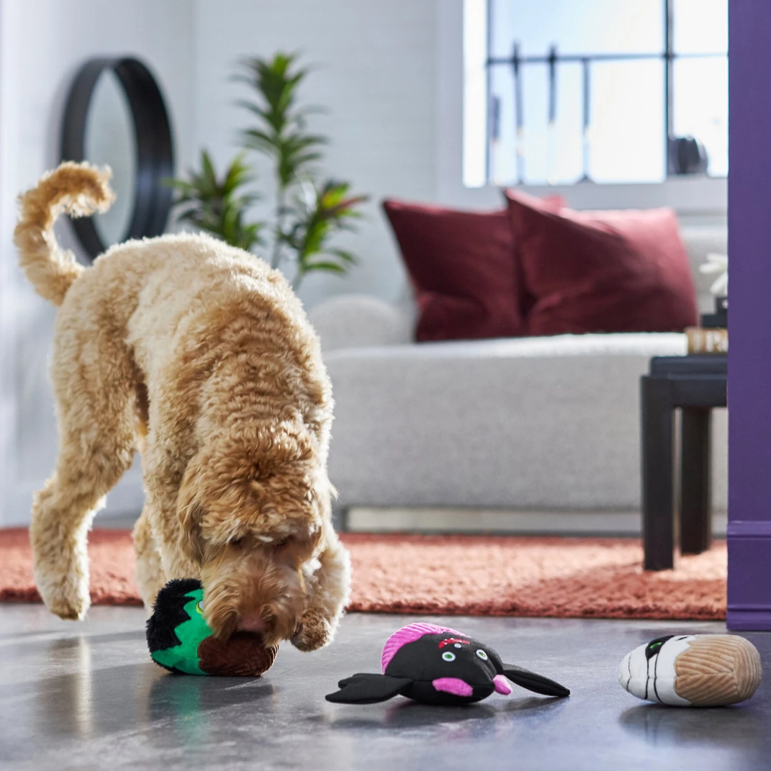 Trick or treat? Why not both? These cupcakes are just the sweet treat to get your pup in the spirit of the spooky season—just don’t let your pup munch them for real! This ghoulie gang includes a bat, a mummy and a Frankenstein’s monster cupcake, so your pupcake can party with their favorite, classic Halloween friend. Just give one a squeak and toss them for your pup to catch or fetch. Your dog will be filled with Howl-o-ween joy!