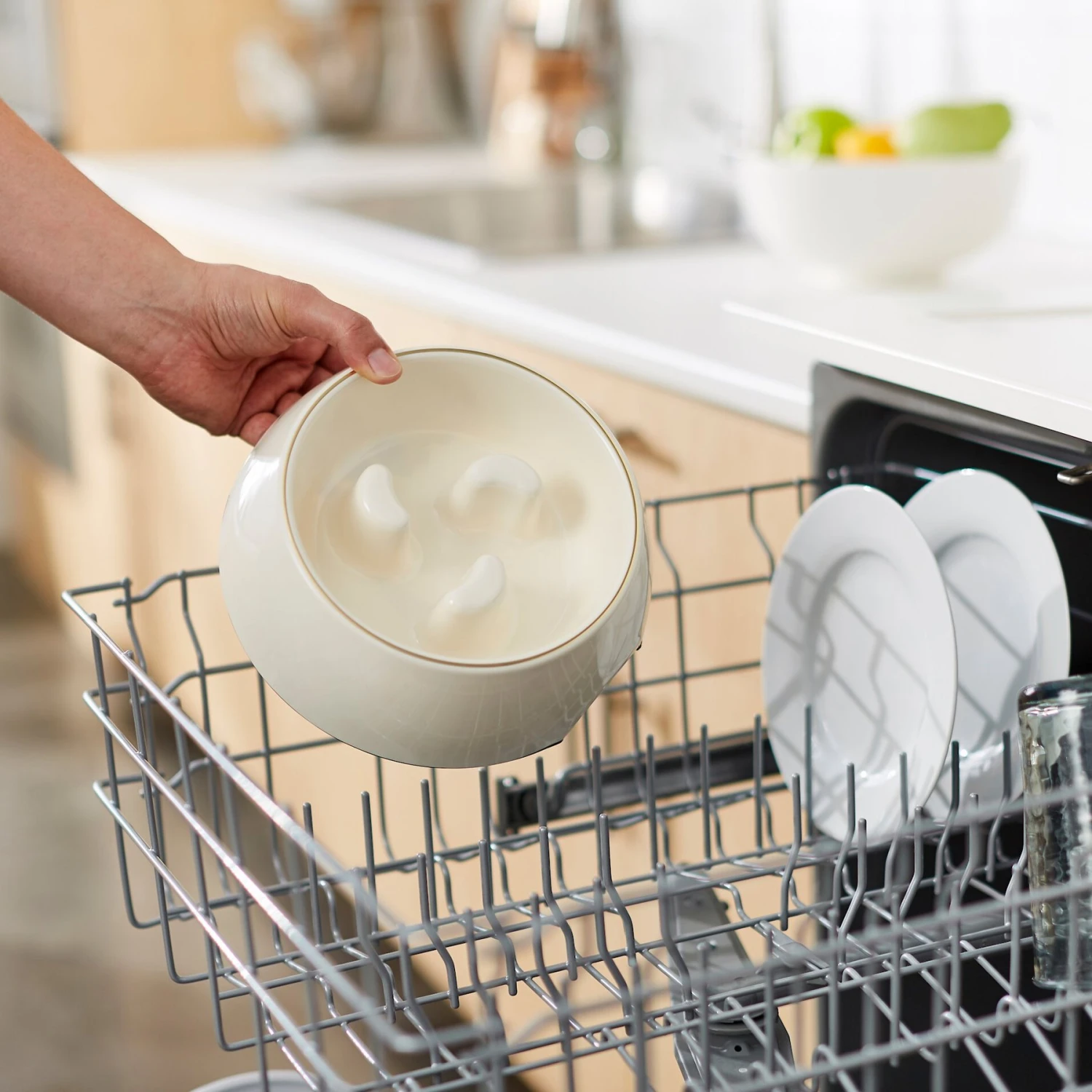Frisco Melamine Slow Feed Dog & Cat Bowl With Gold Trim