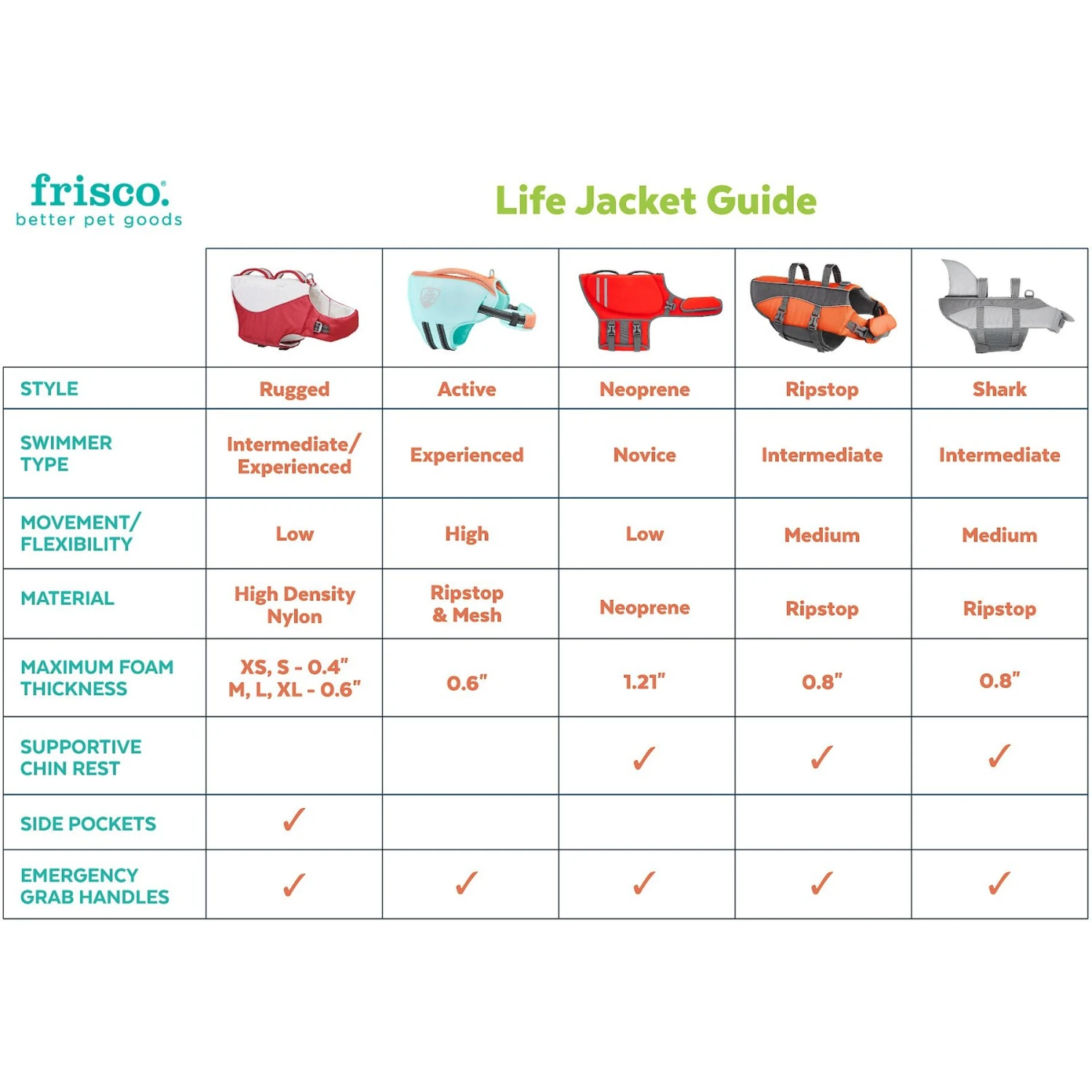 Remember to measure your pet for the paw-fect fit. This fun life jacket isn’t just your pet’s new favorite Bark Week outfit, it’s also just the buoyancy boost they need for on-the-water fun. It’s got cuteness covered with a shark fin on top, attached with button snaps and hook-and-loop fasteners so it’s easy to take off. But we recommend leaving it on! Designed for flexible movement with safety in mind, this life jacket has a front panel with a flotation flap and thick 20mm foam side panels to help keep their head above water. A durable 3.4mm thick neoprene belly band and three adjustable straps with side-release buckles will help you get the best, snug fit to help ensure comfort and safety for your pup. There is also a grab handle on the top of the life jacket—larger sizes come with dual handles—to help you pull your dog out of the water quickly in case of emergency. When traveling on dry land, there is a D-ring for leash attachment on the back of the life jacket. Be sure to weigh and measure your pet and choose the size that matches the recommended weight range. This way, you can ensure that the life jacket will provide the proper fit and level of buoyancy.