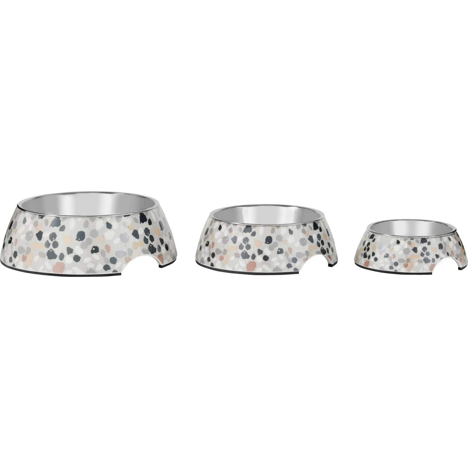 - Melamine base features a terrazzo pattern that elevates your dog’s dining experience.